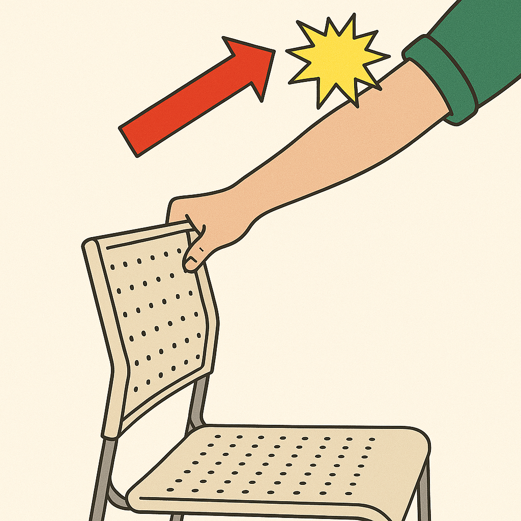 椅子でなくても、ペットボトルなどの負荷がかかるものを上から掴んで持ち上げたときに痛みが出る場合には陽性と判断できます。