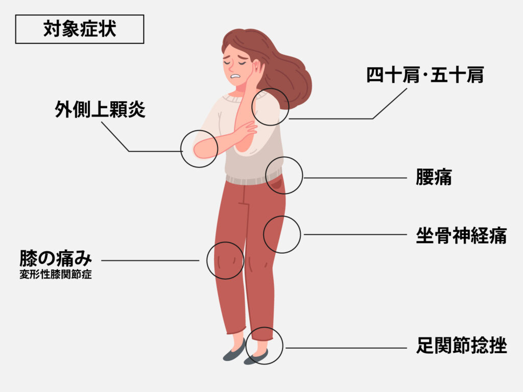 ES-5000を使用することで、あらゆる身体の痛みに対して使用可能です。北本市にあるにしやま整骨院では、お身体の状態にあわせて適切な施術方法をご提案することを大切にしています。